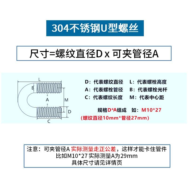 304 stainless steel U type bolt screw U shaped pipe clamp U type pipe clamp hoop fixing card M6M8M10M12-Taobao