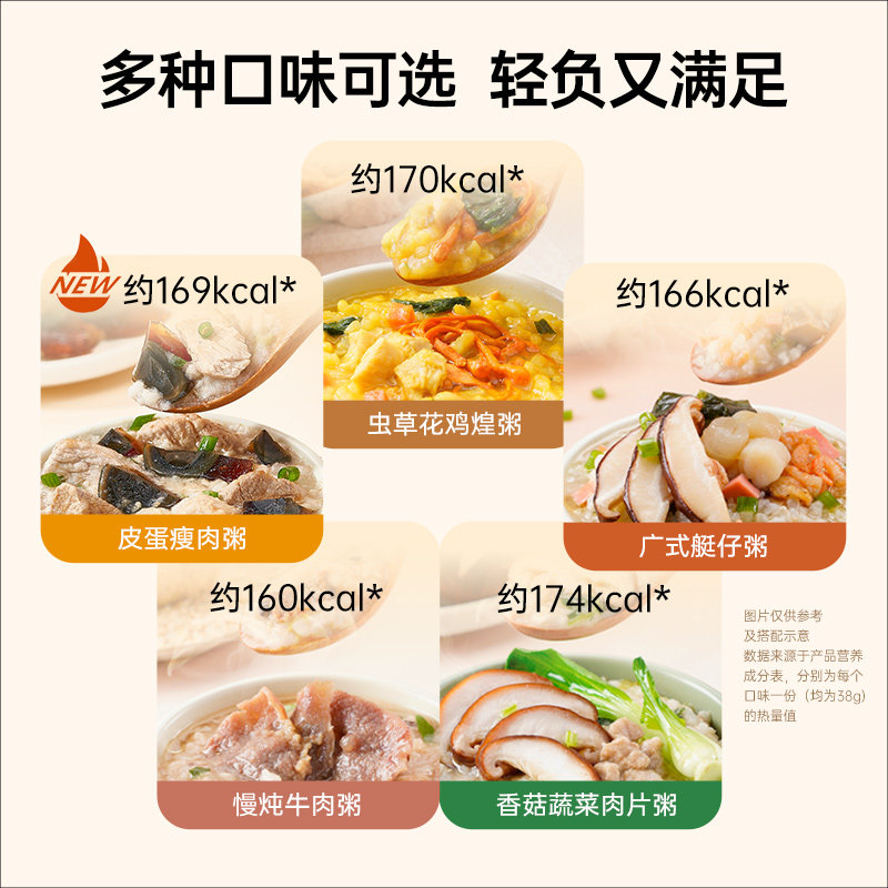 Wide-Style Boat Congee * 1 Slow Stew Beef Congee * 1 Caterpillar Fungus Chicken Porridge * 1 Egg Lean Meat Congee * 1 Mushroom Vegetable Meat slice porridge * 1 (more good on the new one)