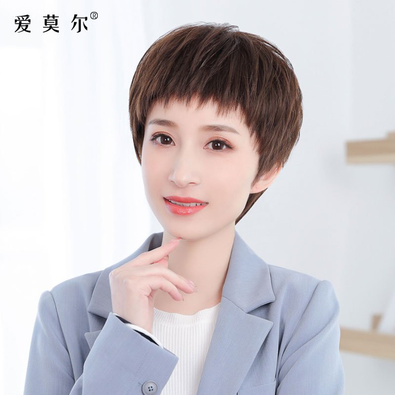 Aimore wig woman short haired dog nibble-style brownsenet red fashion woman handsome natural whole headgear live-action hair