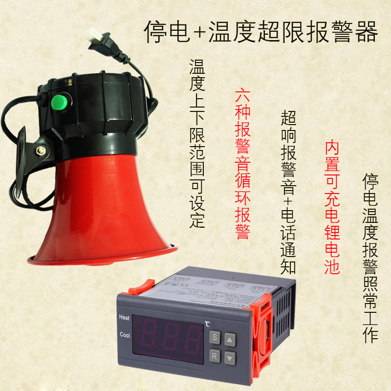 Audible and visual temperature siren (no call notice) Temperature sirens not loud (with phone notification) 220V power outage call high and low temperature alarm 220V power outage high temperature alarm phone notification 38