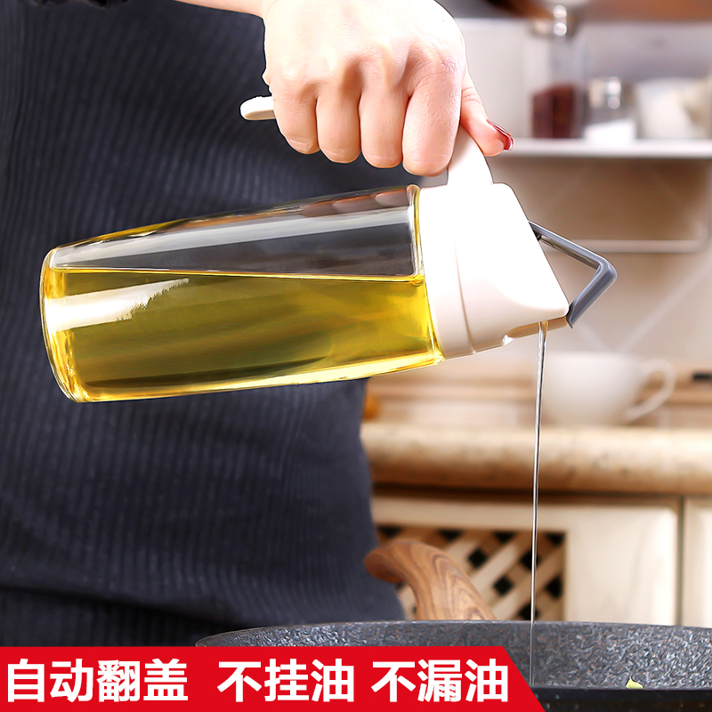 Automatic clamshell oil bottle oil jug home transparent glass kitchen with oil tank leakproof and no oil spill without hanging oil Japanese vinegar