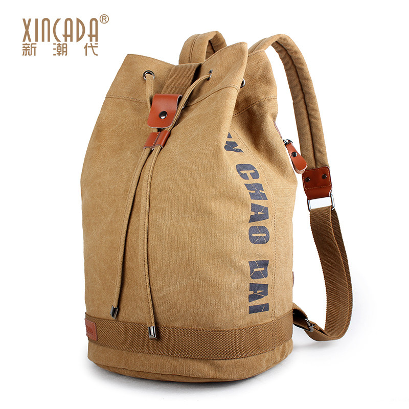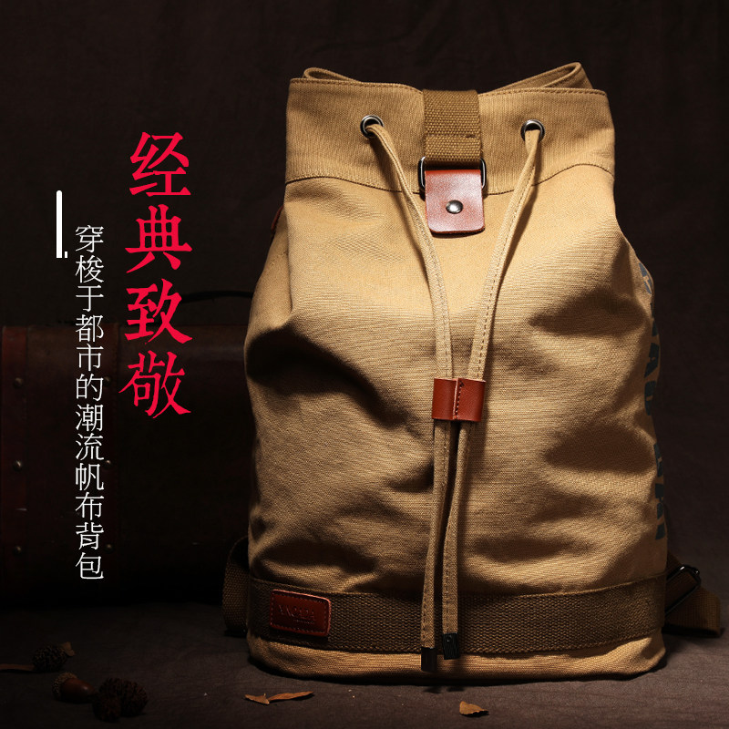 Canvas Bucket Double Shoulder Bag Men's Outdoor Sports Leisure Large Capacity Computer SHOULDER BAG TRAVEL STUDENT SCHOOL BAG FEMALE TIDE