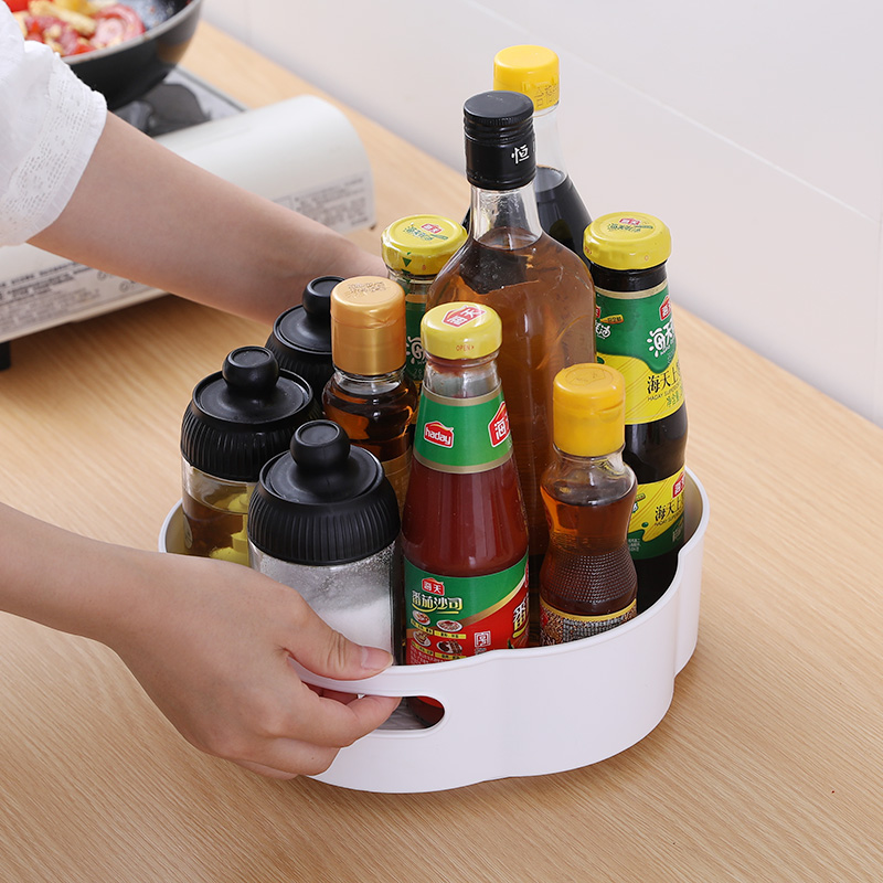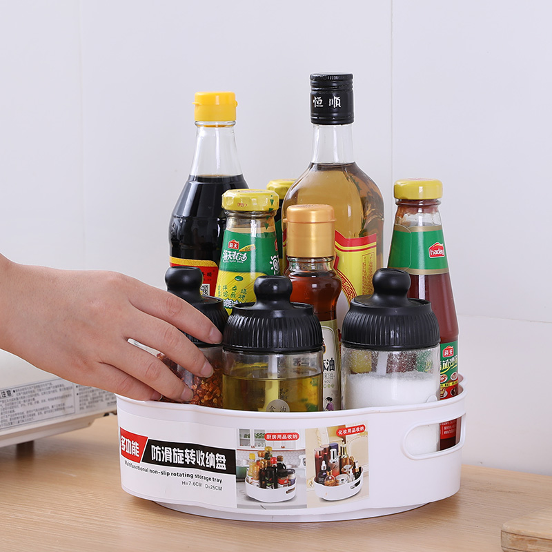 Rotary kitchen condiment storage tray multi-functional condiment bottle storage rack countertop cosmetic storage artifact