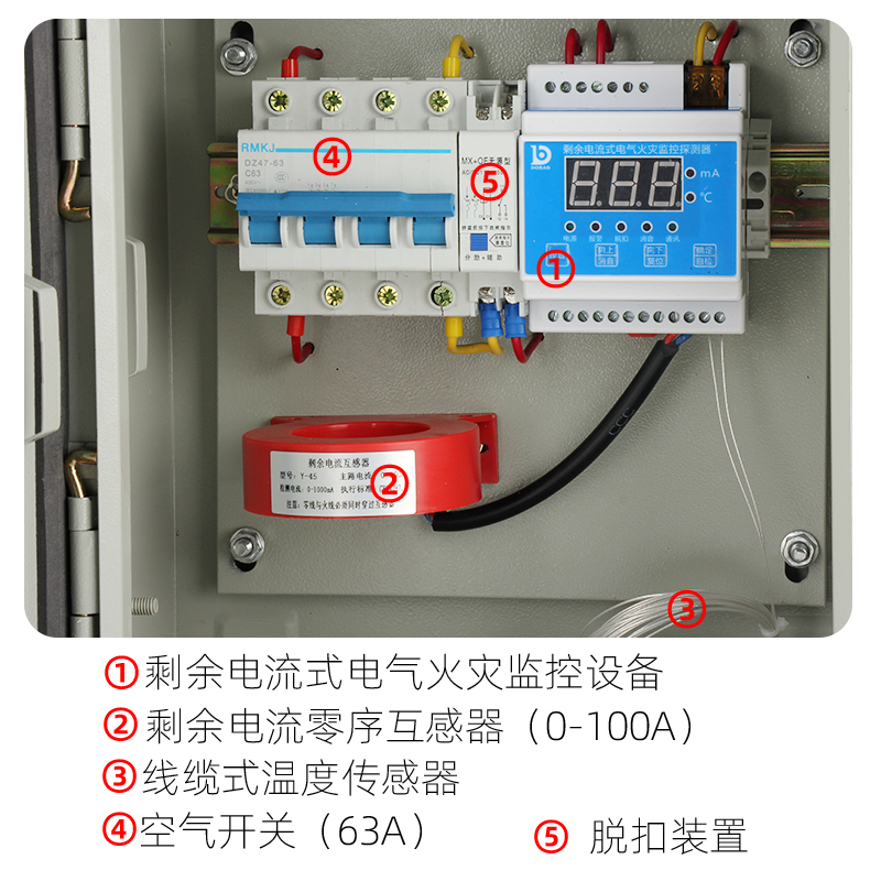 Residual current type electrical fire monitoring detector Leakage monitoring Distribution box Temperature detection Complete cabinet
