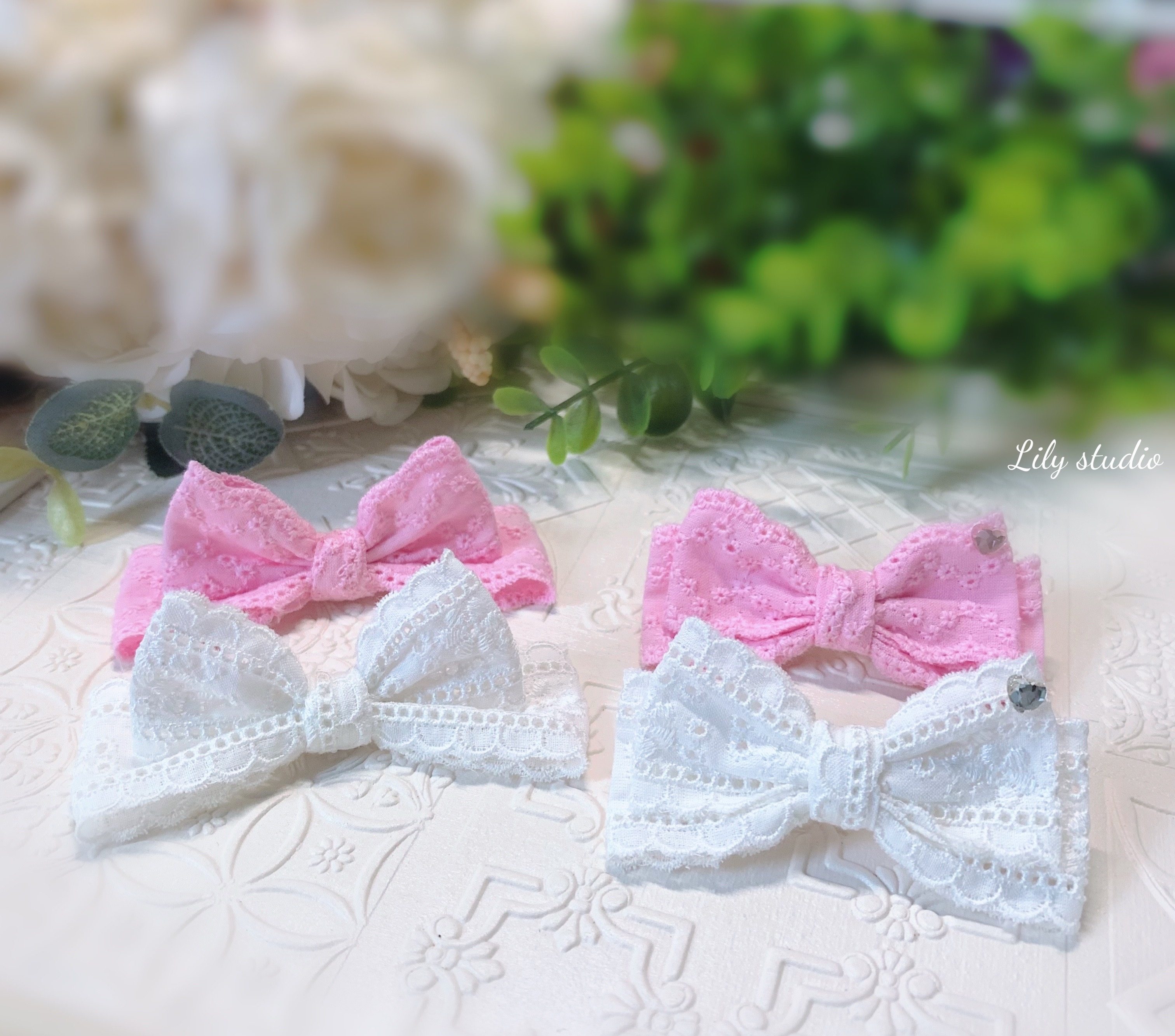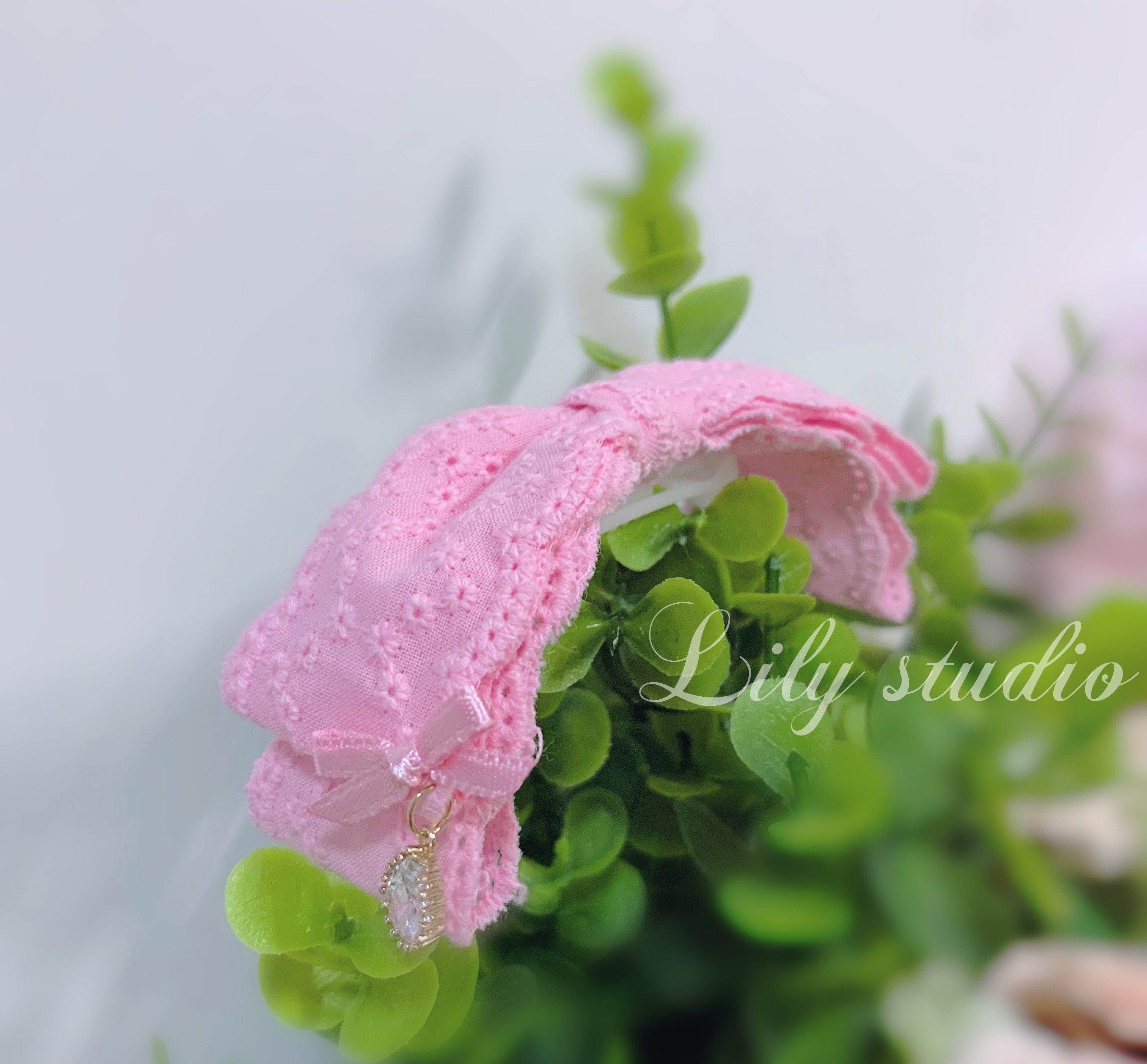 Lily studio original handmade pet hair clip pink girl bow head flower Maltese Yorkshire