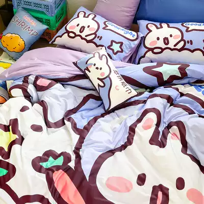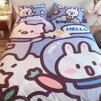 (Toyama Strawberry) Cute Rabbit Cotton Four-piece Cartoon Cotton Dormitory Three-piece Bedding
