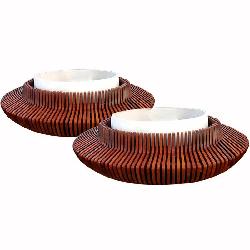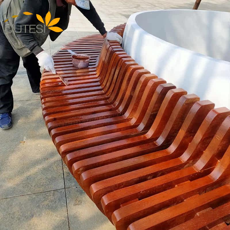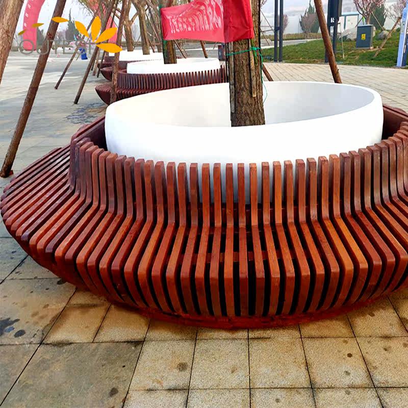 Custom fiberglass tree pool shopping mall outdoor seating square wooden art public leisure chair garden landscape shaped stool