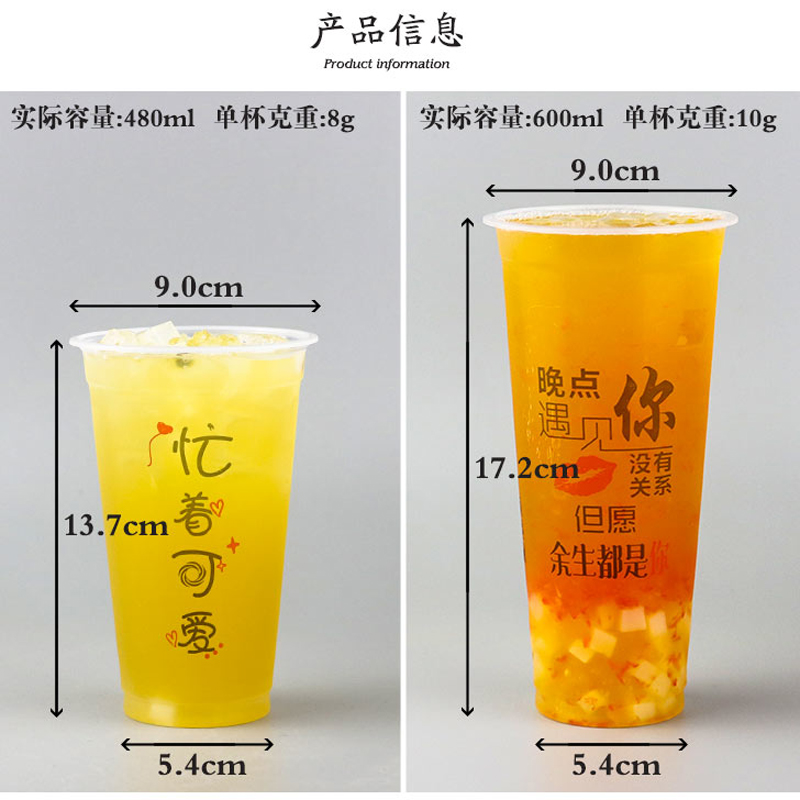 Disposable net red milk tea plastic cup thickened PP text paragraph confirmation eye-rest raw coffee hot drink cup 100 only