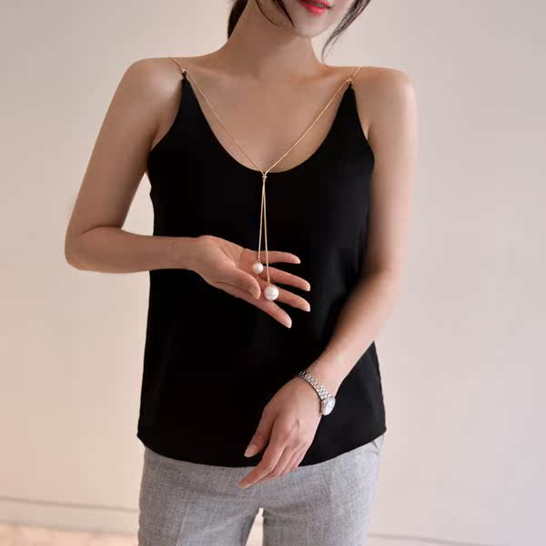 Size pearl pendant necklace camisole vest base shirt Joker Korea 2020 Summer new