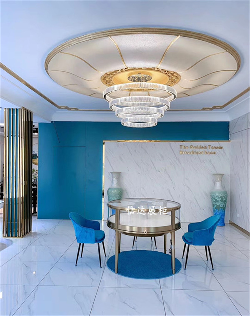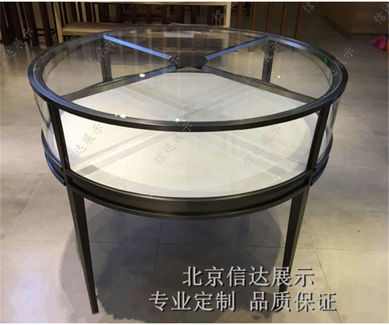 Round jewelry display cabinet stainless steel jewelry Jade Jade display cabinet curved transparent glass medium island counter customized