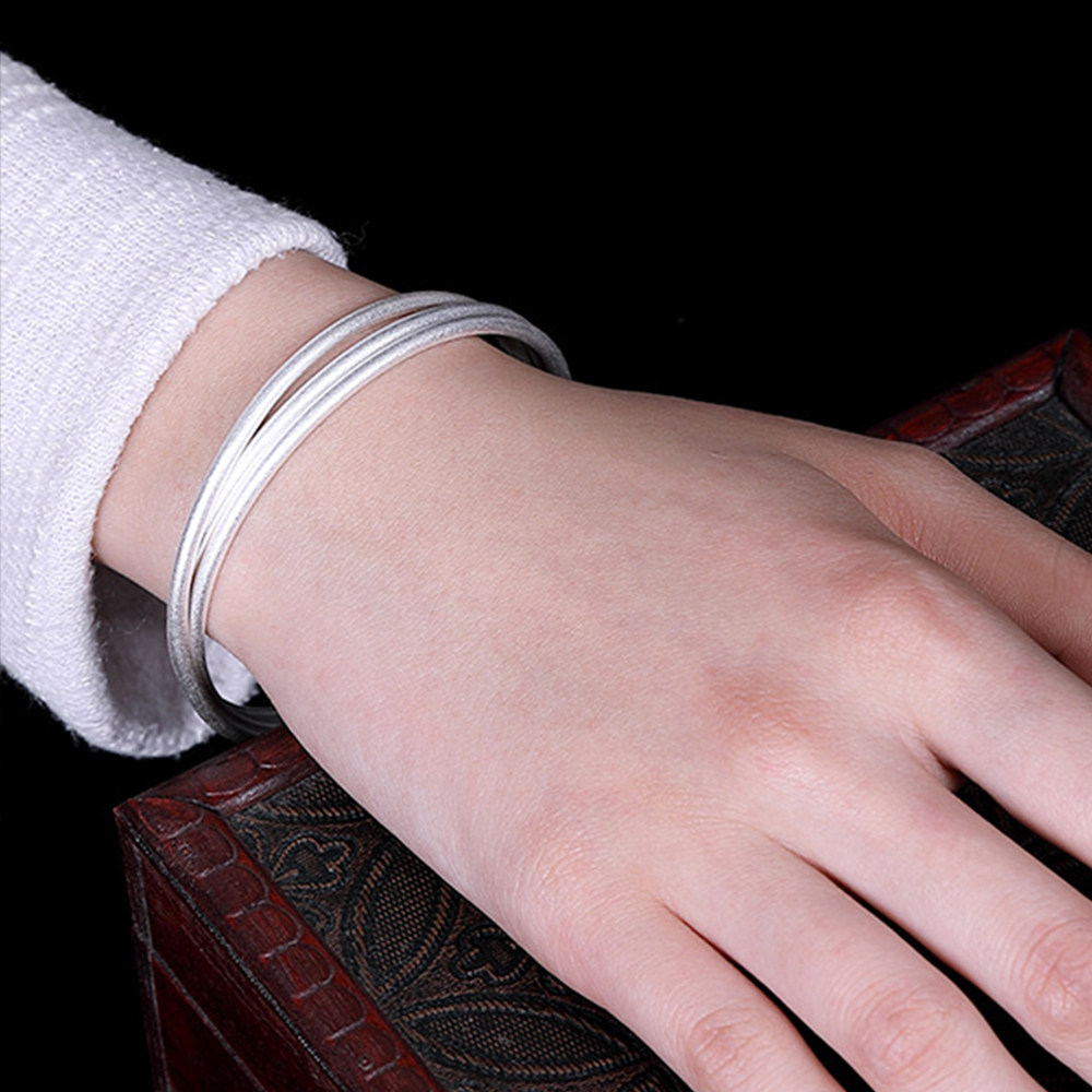 Ancient method pure silver 999 bracelet inheritance solid closed mouth simple frosted sterling silver bracelet lettering niche design net red