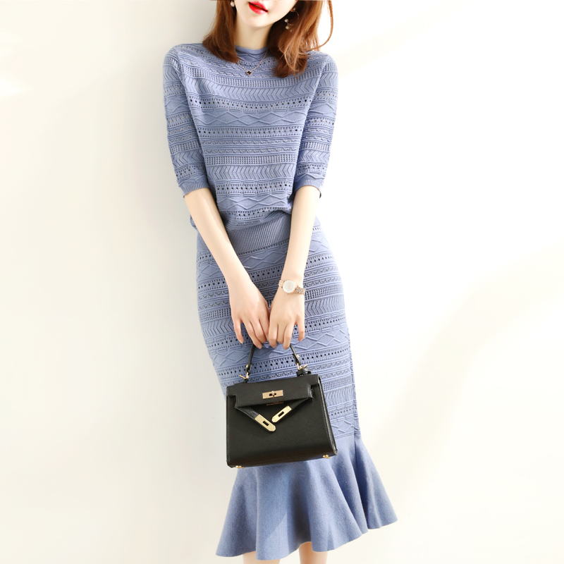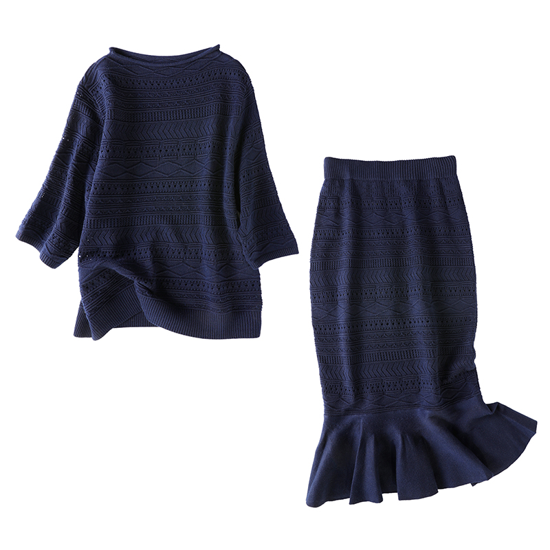 Malcenl klon fishtail skirt women's new fashion two-piece dress mid-length knitted suit skirt