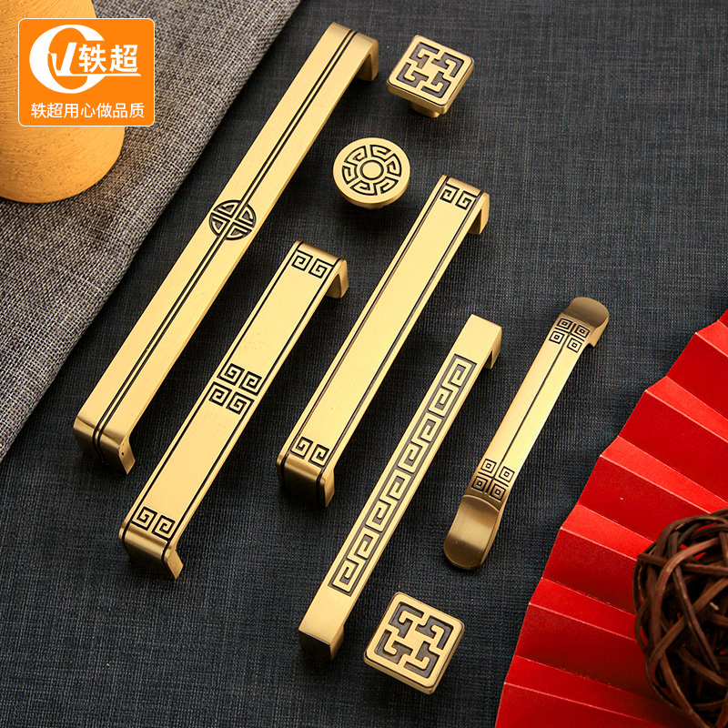 Chinese style handle cabinet door New Chinese furniture wardrobe door handle imitation antique bronze color cupboard subdrawer brass pull handle-Taobao