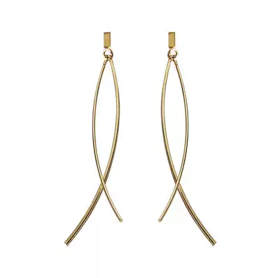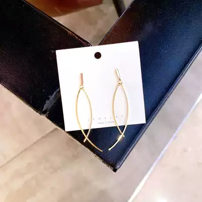 2021 new elegant temperament curved cross-sense simple earrings niche design tassel long version of face-thin earrings