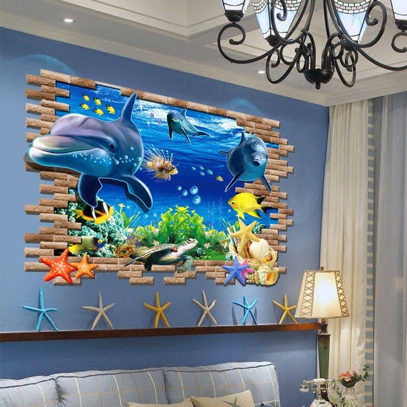 (Multiple optional) Creative 3D Solid wall stickers sticker Dolphin Seafronor World Children's Dorm Room Bathroom