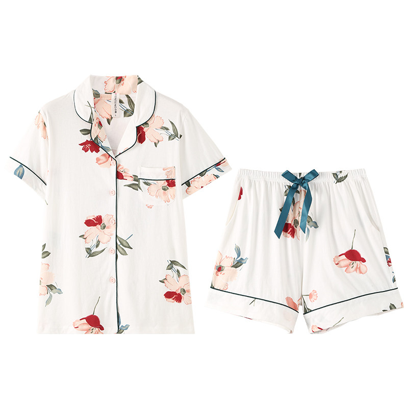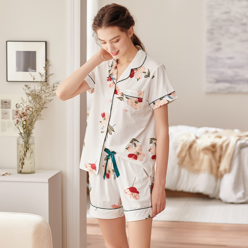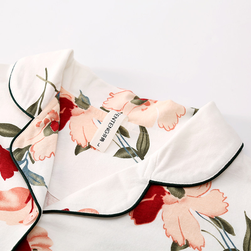 Finten Summer New Sleepwear Lady Pure Cotton Short Sleeve Shorts Sweet and long pants can be worn out of large size All cotton Home Home Clothing
