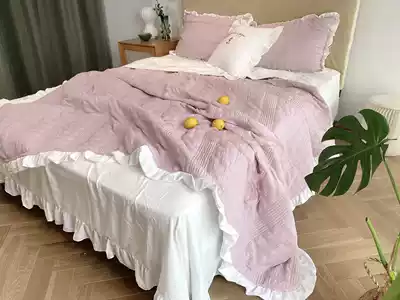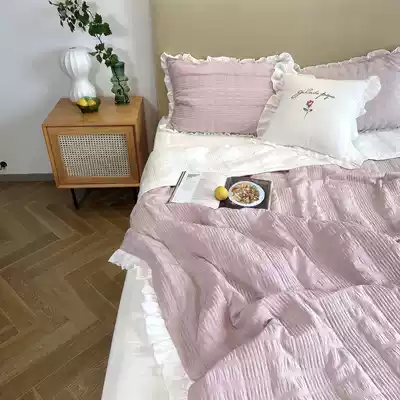 Seersucker ins Girl heart Ruffle edge summer cool quilt Korean air conditioning quilt three-piece Princess wind thin quilt