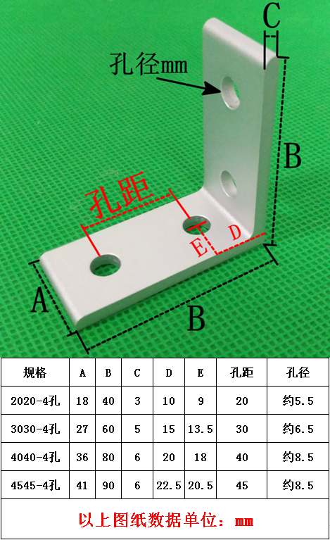 Vertical corner piece 90-degree angle aluminium connecting piece aluminium extrusion material 4 holes aluminium alloy extrusion corner fitting corner code right angle fixing piece
