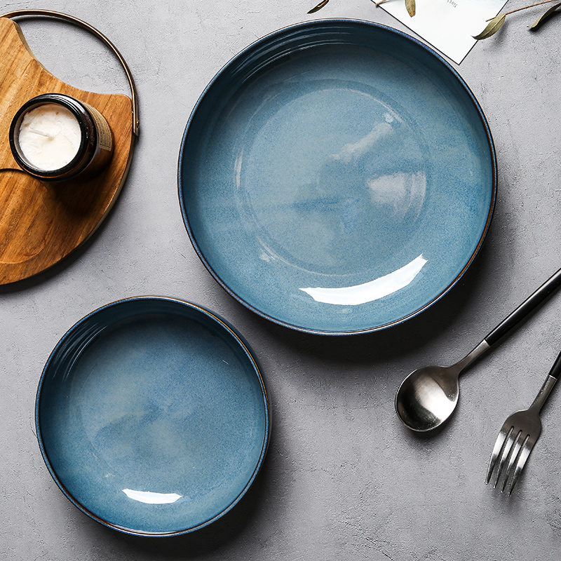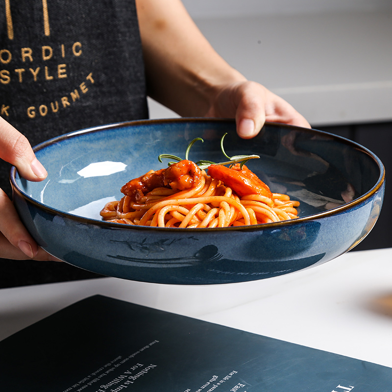 Dinner Plate Deep Pan Pure Color Eurostyle Dishes Creative Home Fish Pan Retro Light Mouth Basin Deep Pan Ceramic Western Dining Cutlery