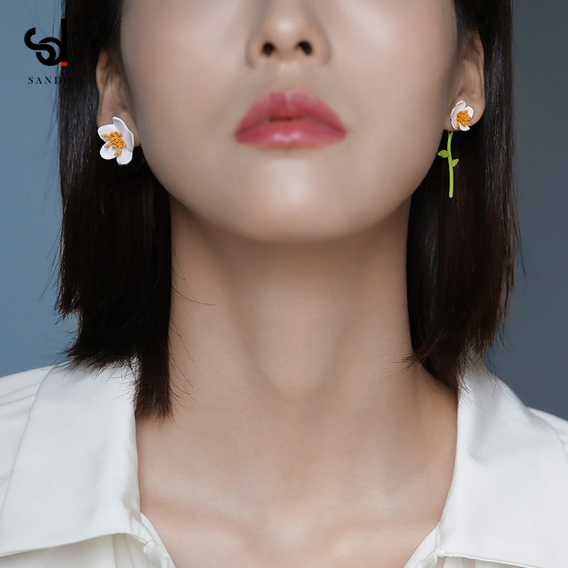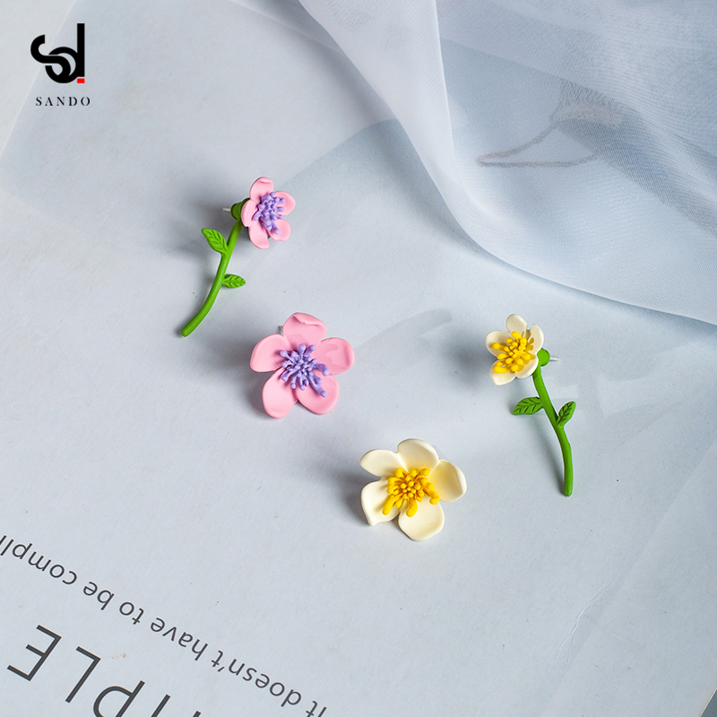 Summer purple small flowers asymmetrical ear needle pure silver needle earrings South Korean temperament net red and gentle superfairy