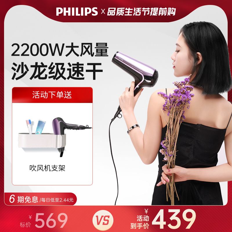 Philips hairdryer Hairdresser Shop hairstylist Special high-power hot and cold wind negative ion hair care home hair dryer