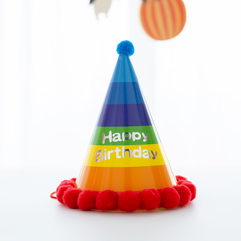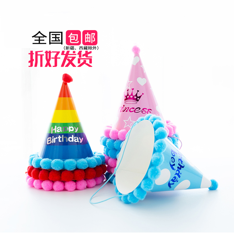 20 cartoon rainbow hairball birthday hat baby one year old crown party hat net red children adult cake hat