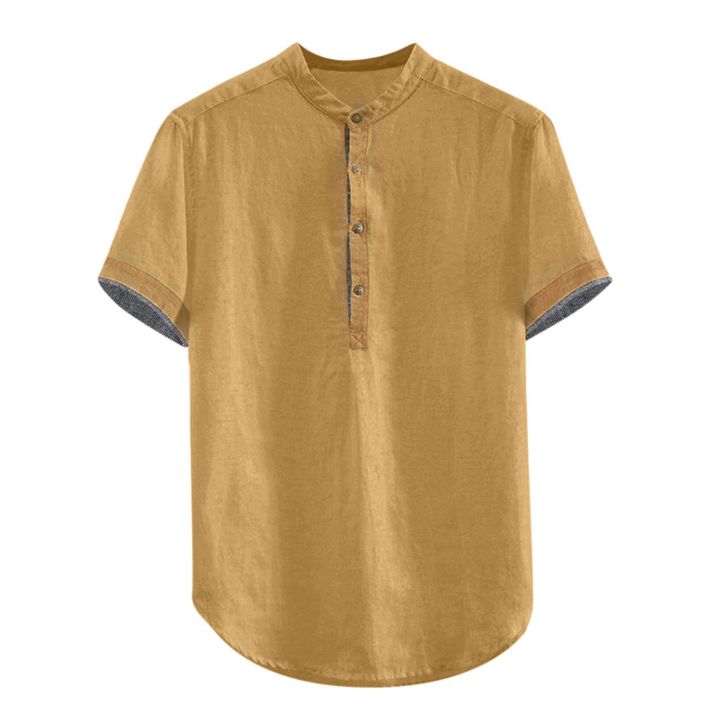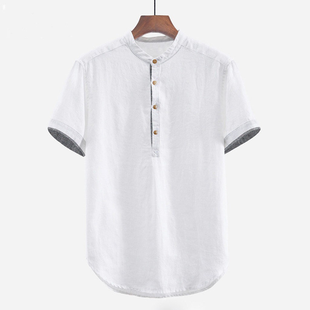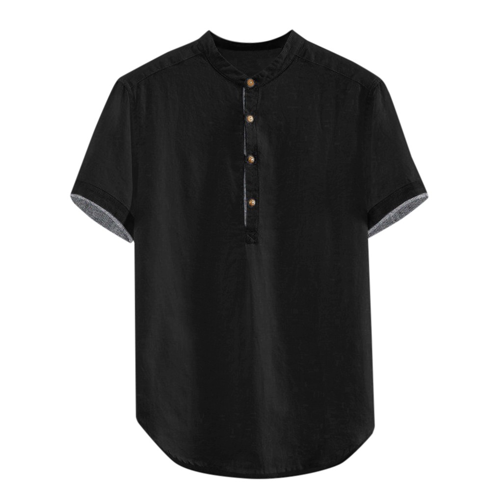 2019 Summer Men Baggy Solid Cotton Linen Short Sleeve Butto