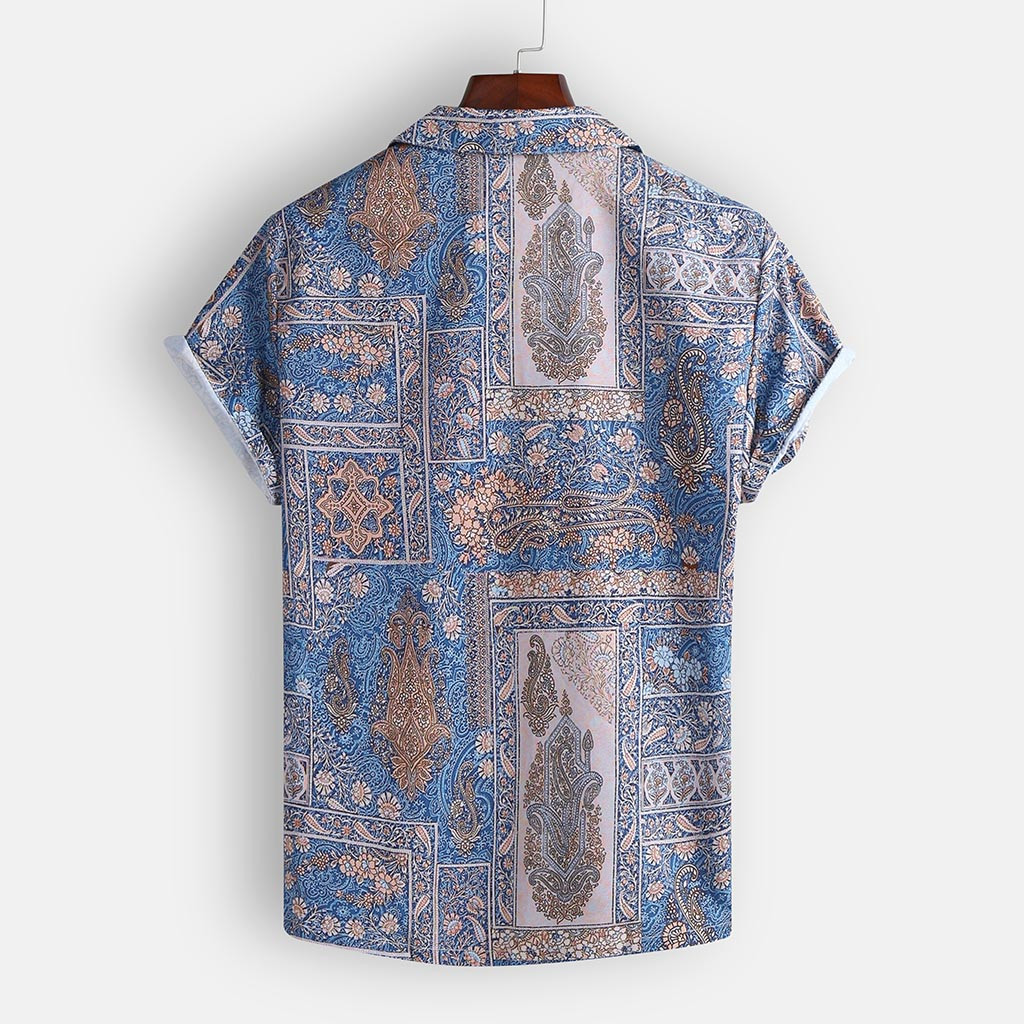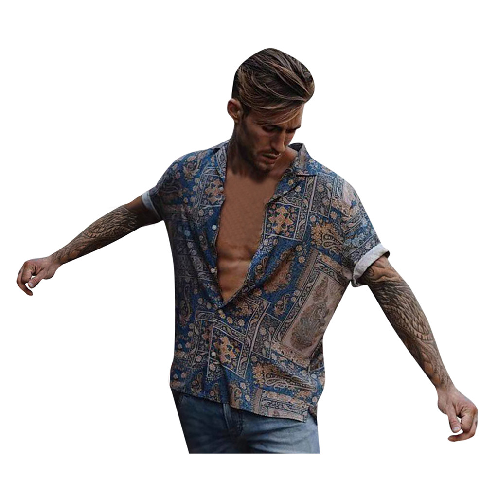 Mens Summer Fashion Casual Lapel Print Short Sleeve Shirt
