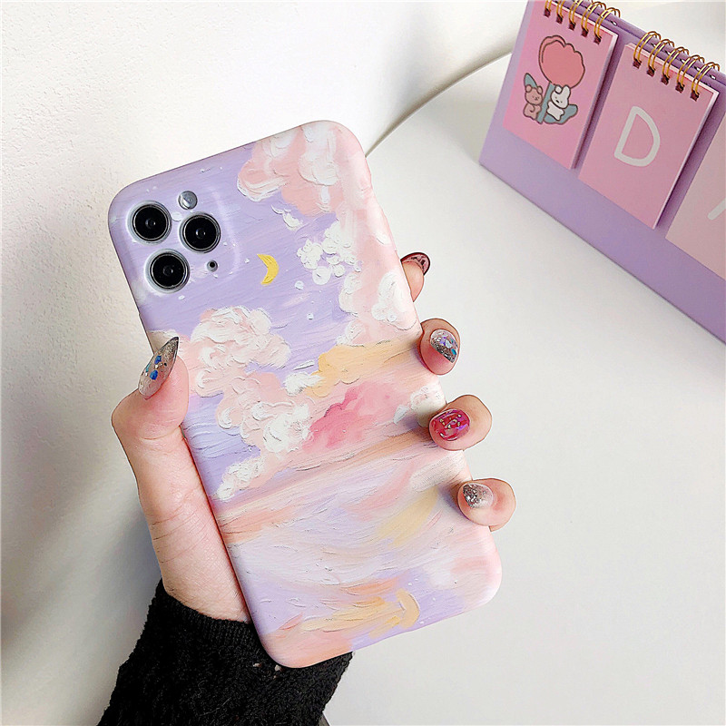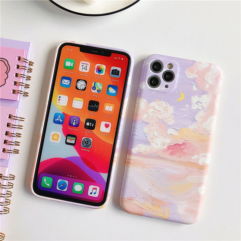 Art Oil Painting Stars Apply Apple 11 Mobile Phone Protection Shell IphoneXR Creativity SE2 9 Personality 7 8plus Teenage Girl Hearts XS Dreamy 11ProMax Summer Silicone