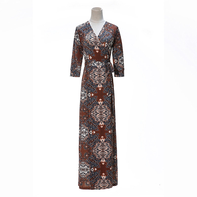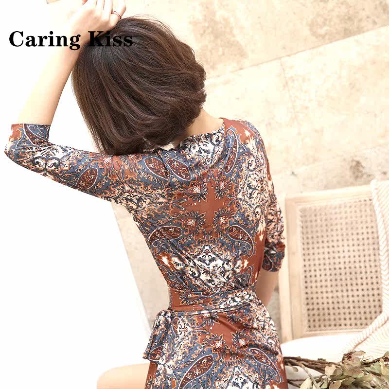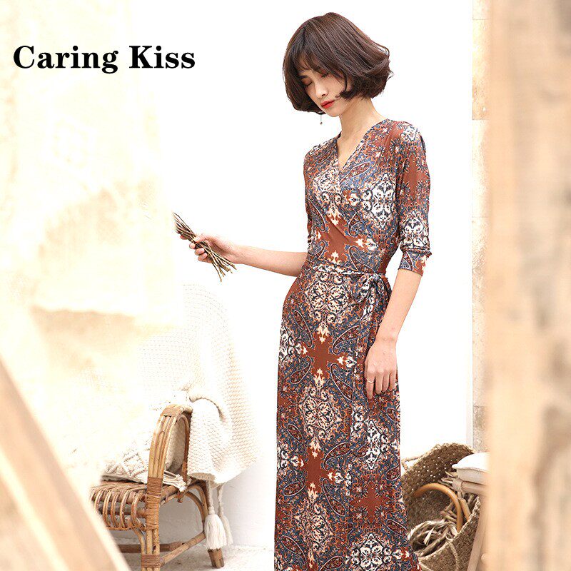 Carling Kiss2020 Summer new crummy wrapped body dress V collar long style slim temperament one-piece dress