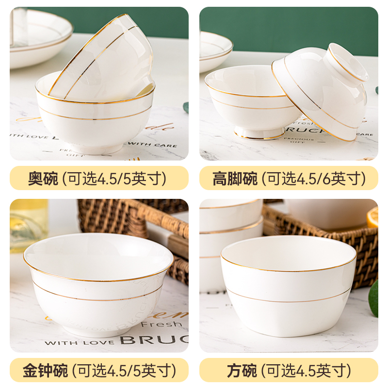 Pure white bowl large soup bowl household European-style Phnom Penh microwave large capacity ceramic large-scale eating noodles to drink soup bowl