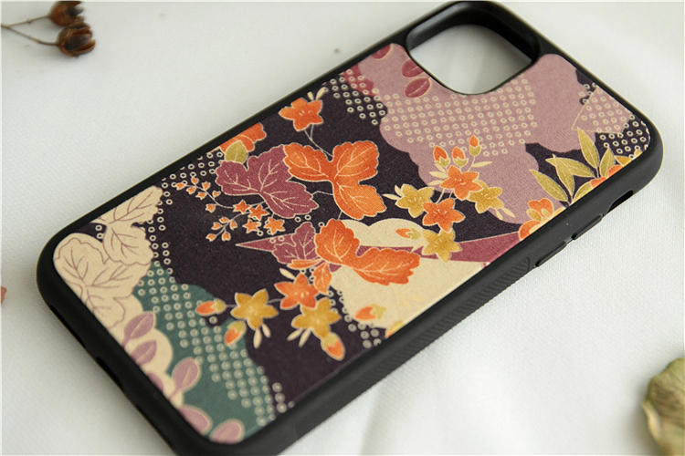 Suitable for iPhone14 original cloth art mobile phone shell promax protective sleeves retro and wind big flowers black soft shell-Taobao