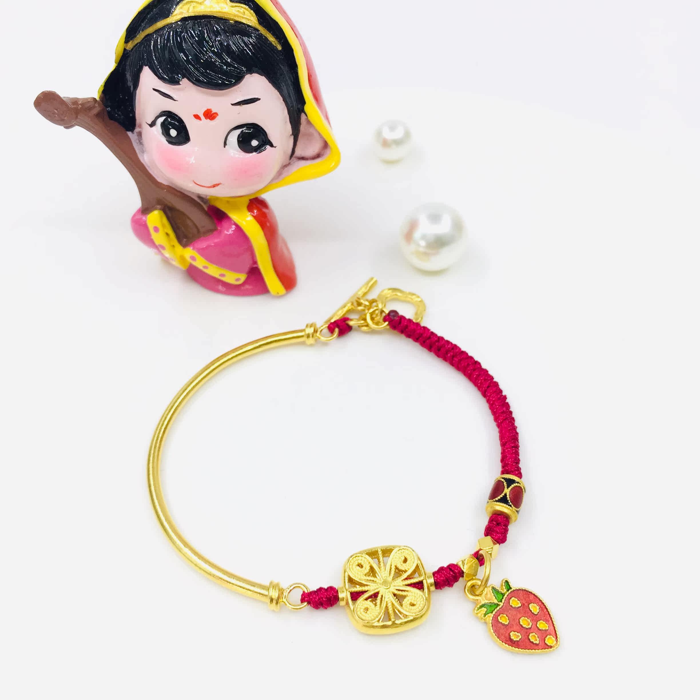Zhaojun Gold Shop 24k Handmade Gold Hollow Four-leaf Grass Carved Seiko Half Bracelet Custom Diy