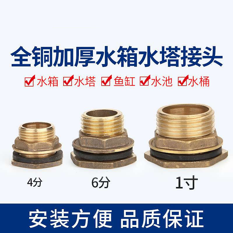 All-copper water tank connector plumbing accessories water tower pool fish tank bucket inner and outer wire water outlet interface 4 minutes 6 minutes 1 inch