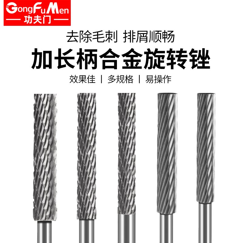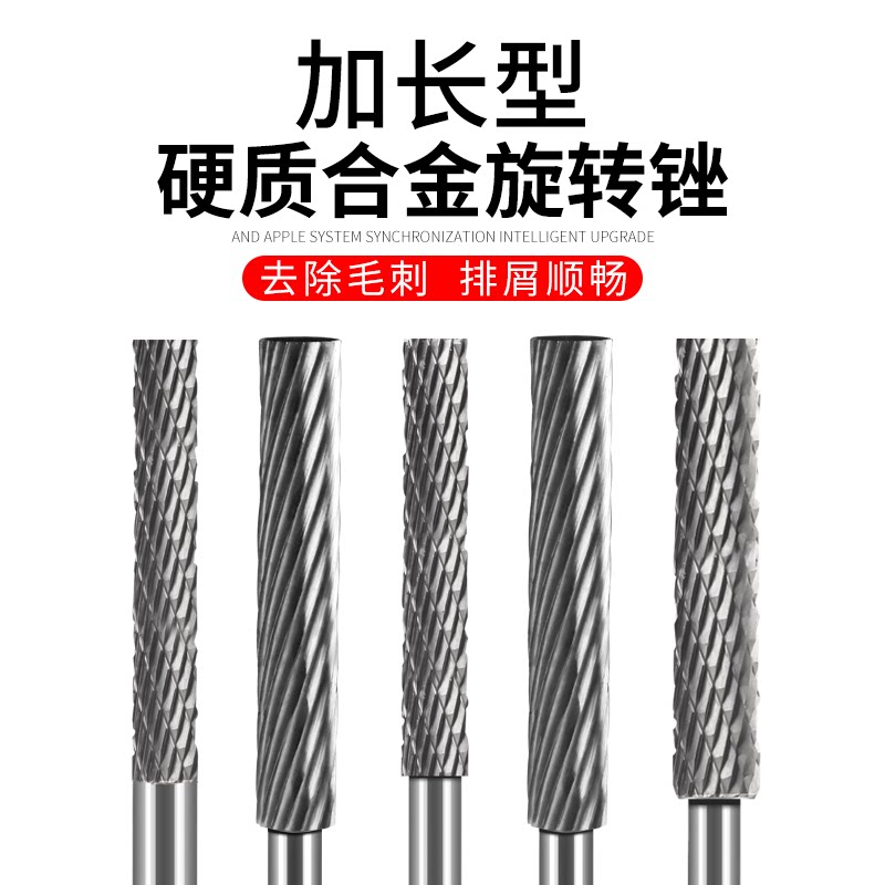 Lengthened tungsten steel grinding head woodworking electric file metal alloy grinding head long handle hard rotary file spiral file