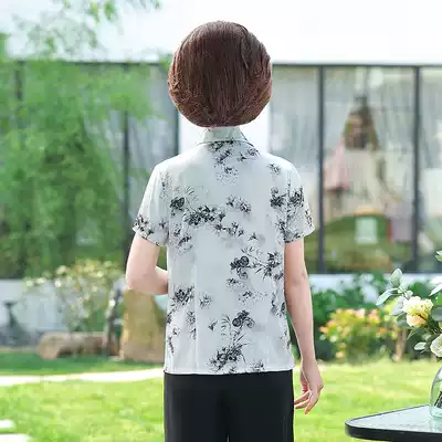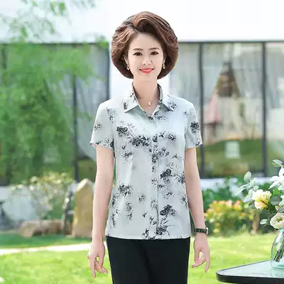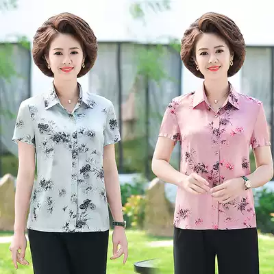 Mom summer dress lapel short sleeve shirt top new middle-aged and elderly 50-year-old clothes small shirt silk shirt