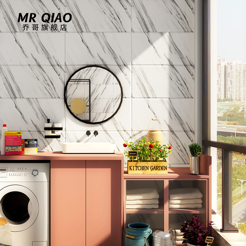 Imitation marble tile self-adhesive wallpaper waterproof and oil-proof 3d three-dimensional wall stickers Kitchen Bathroom Wall renovation wallpaper