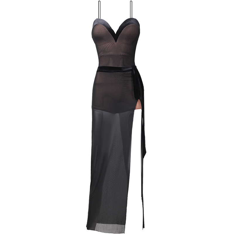 ZYM2033H-Sexy Latin dance adult practice suspender mesh dress female with chest pad snap safety pants