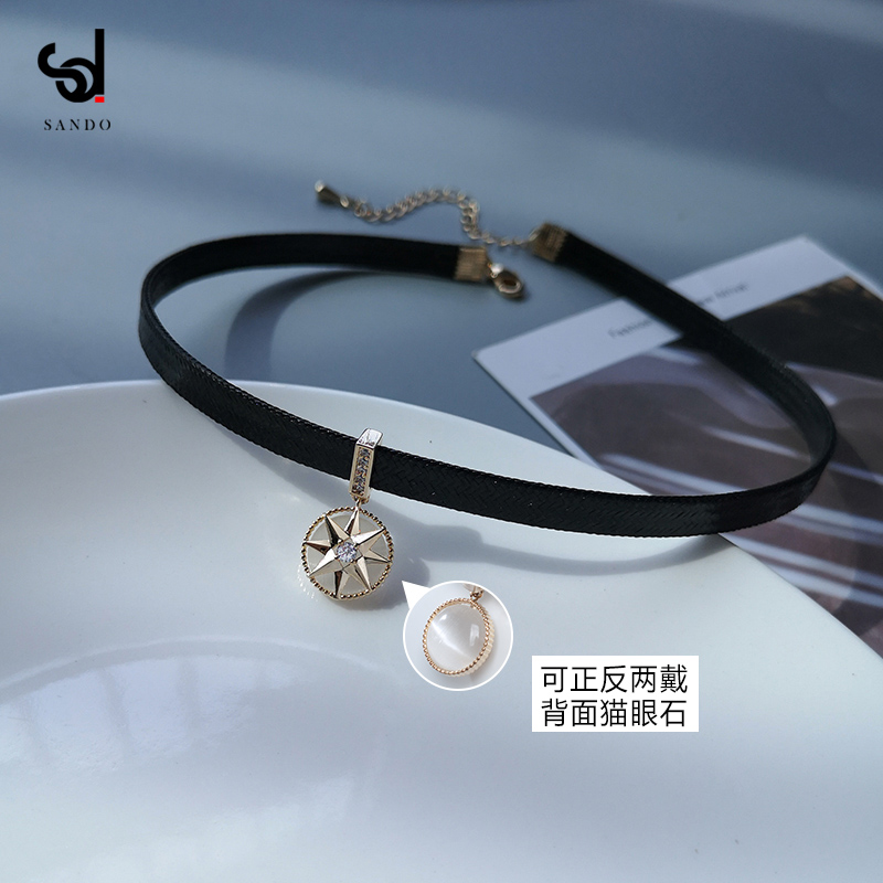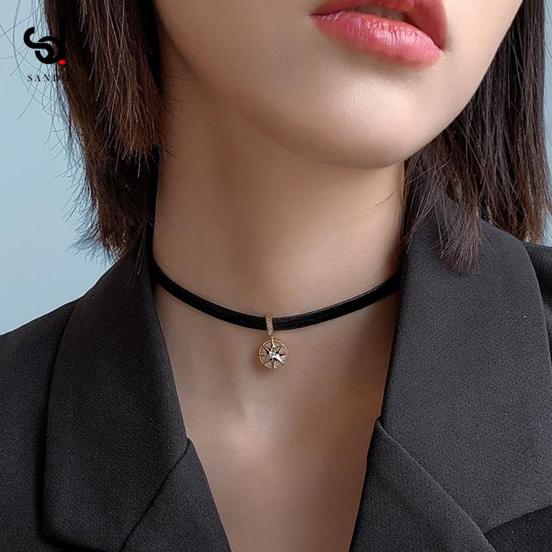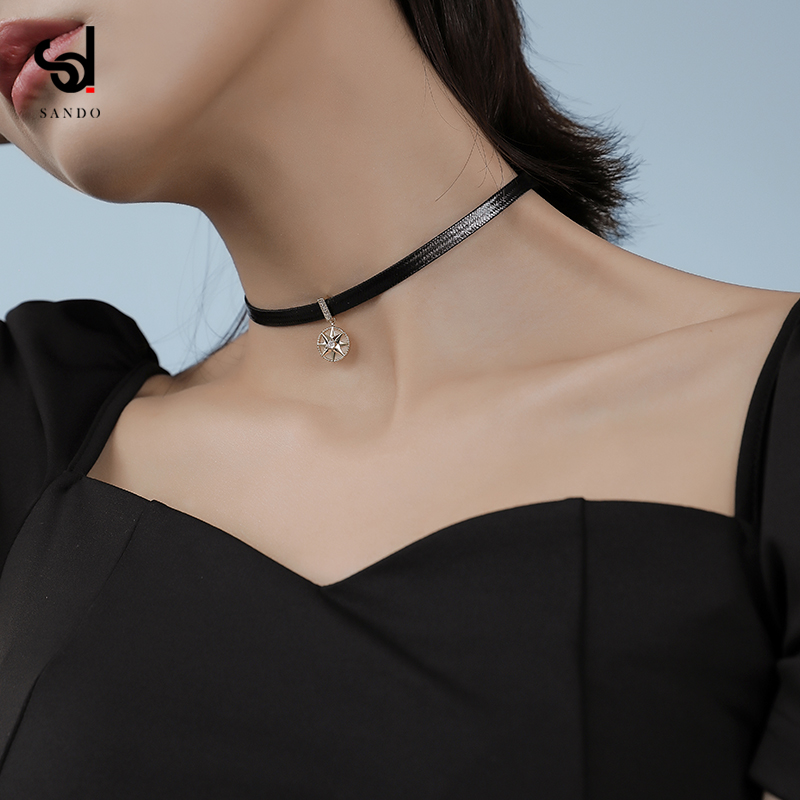 Black Summer Leather Rope Choker Lock Bone Chain 100 lap small crowdnecklace female summer neck accessories neck with necklace necklace Item circle