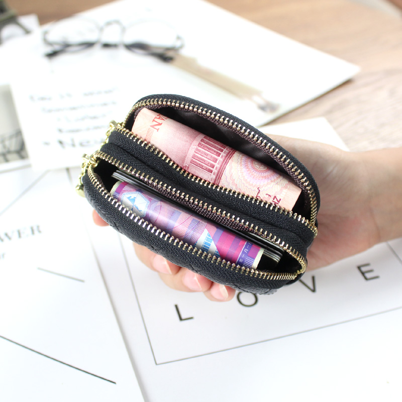 Europe and the United States big new leather double zipper bag ladies short leather wallet mini small handbag cute coin purse