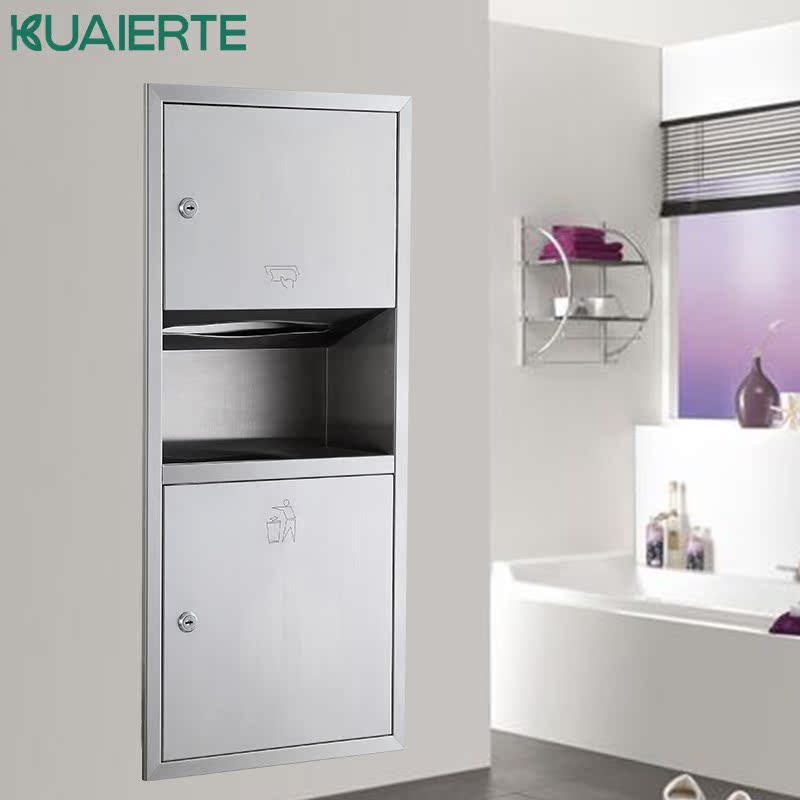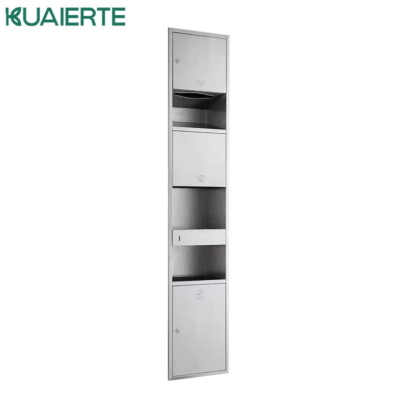 KUAIERTE stainless steel embedded hand dryer combination cabinet Toilet paper box trash can three-in-one wall-mounted commercial