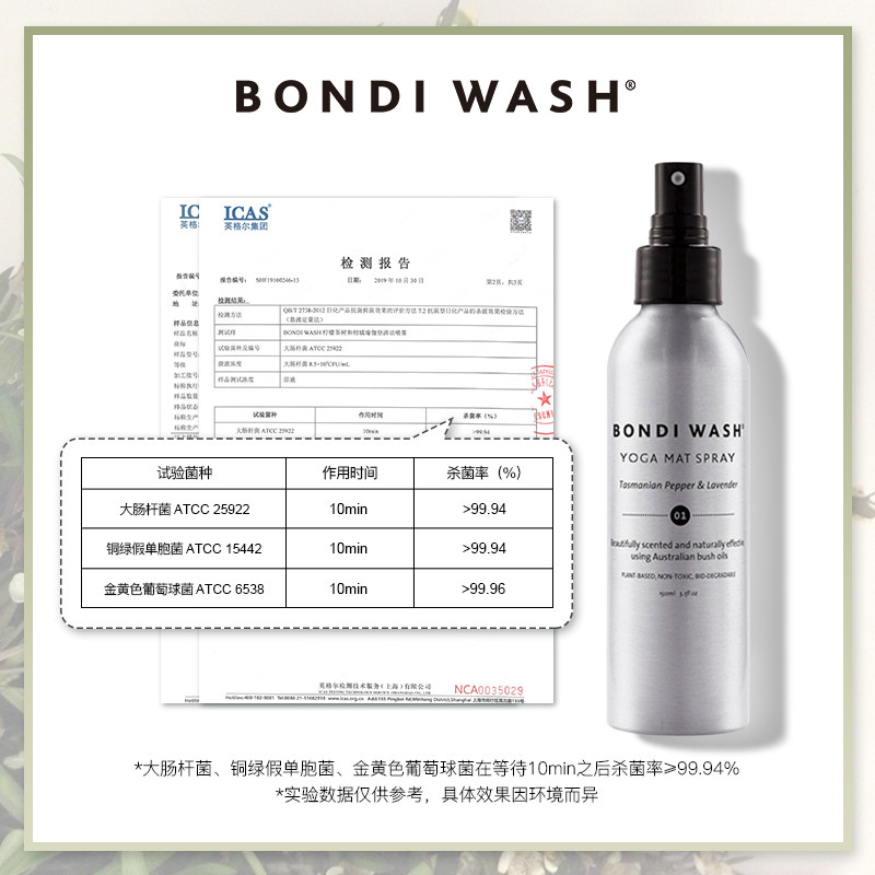 BONDIWASH yoga mat cleaning spray Tasmanian pepper and lavender 150mlBW antibacterial cleaning