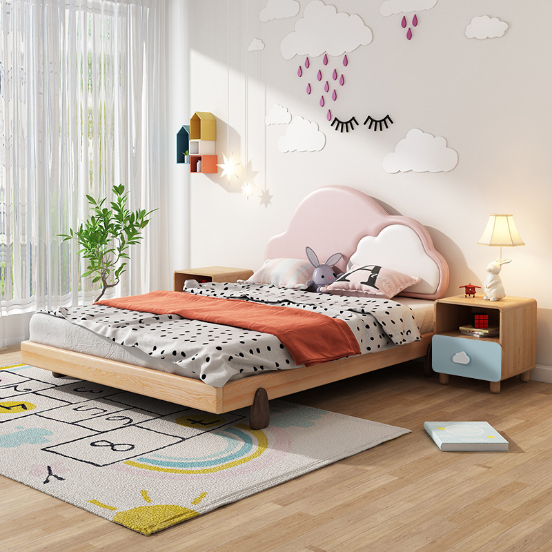 Cloud bed Children's bed Girl princess bed 1 5 meters Boy single bed 1 8 meters Nordic full solid wood leather bed