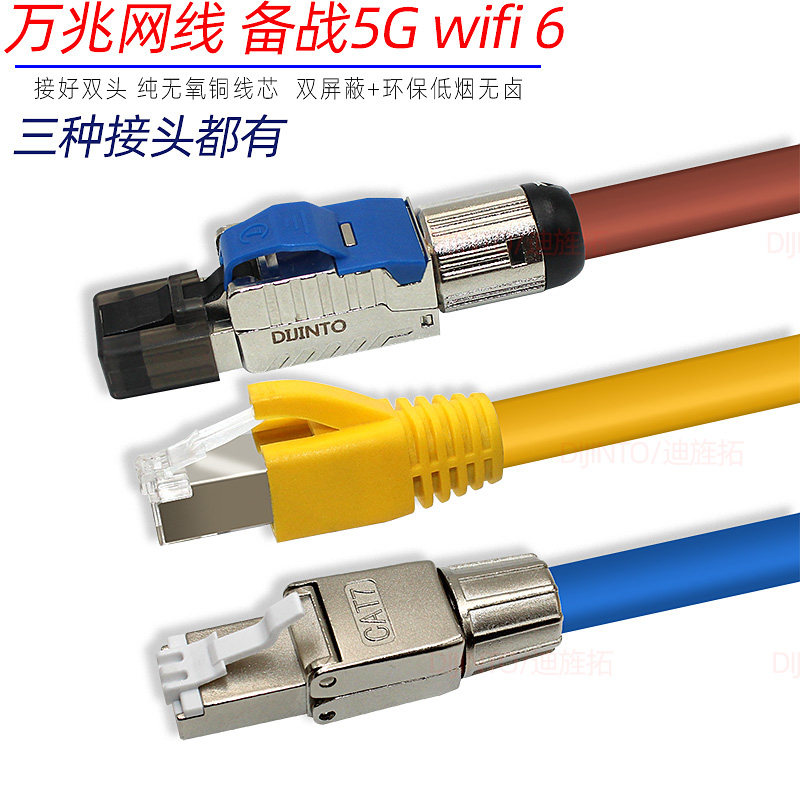 Category 7 yellow wire Shielded and clamped crystal head Category 7 yellow wire Shielded screw type pressure-free head Category 7 yellow wire High-end pressure-free crystal head Category 7 blue wire Shielded and clamped crystal head Category 7 blue wire