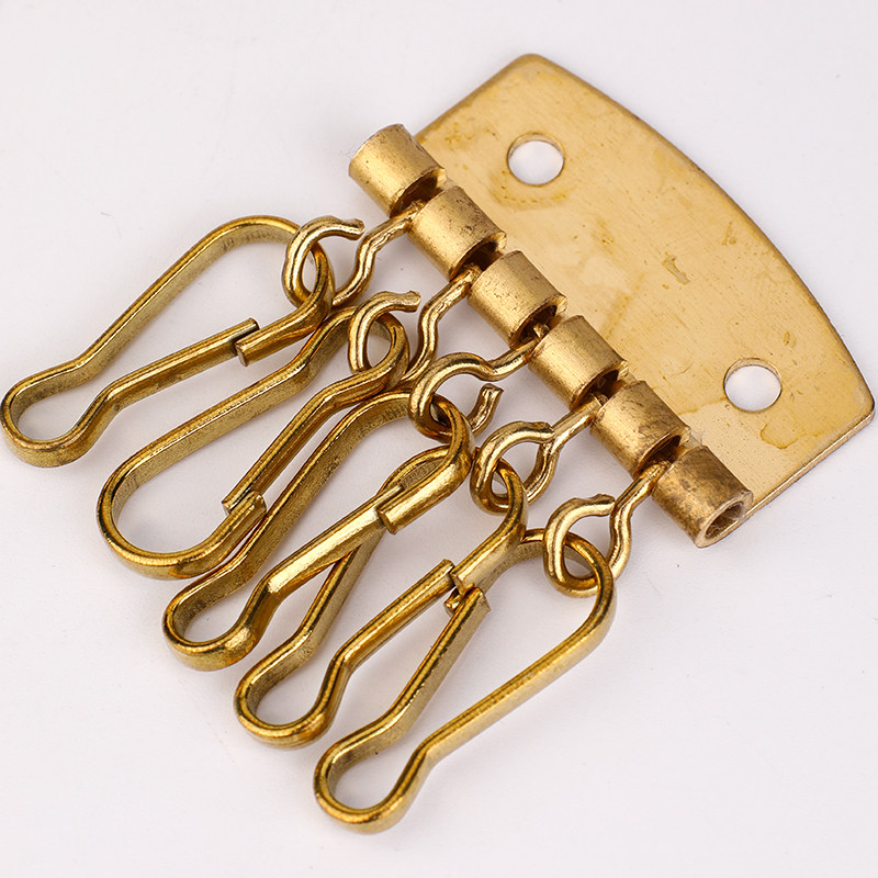 Pure copper key row Zhudan buckle key ring hook handmade diy leather key bag hardware accessories with rivets
