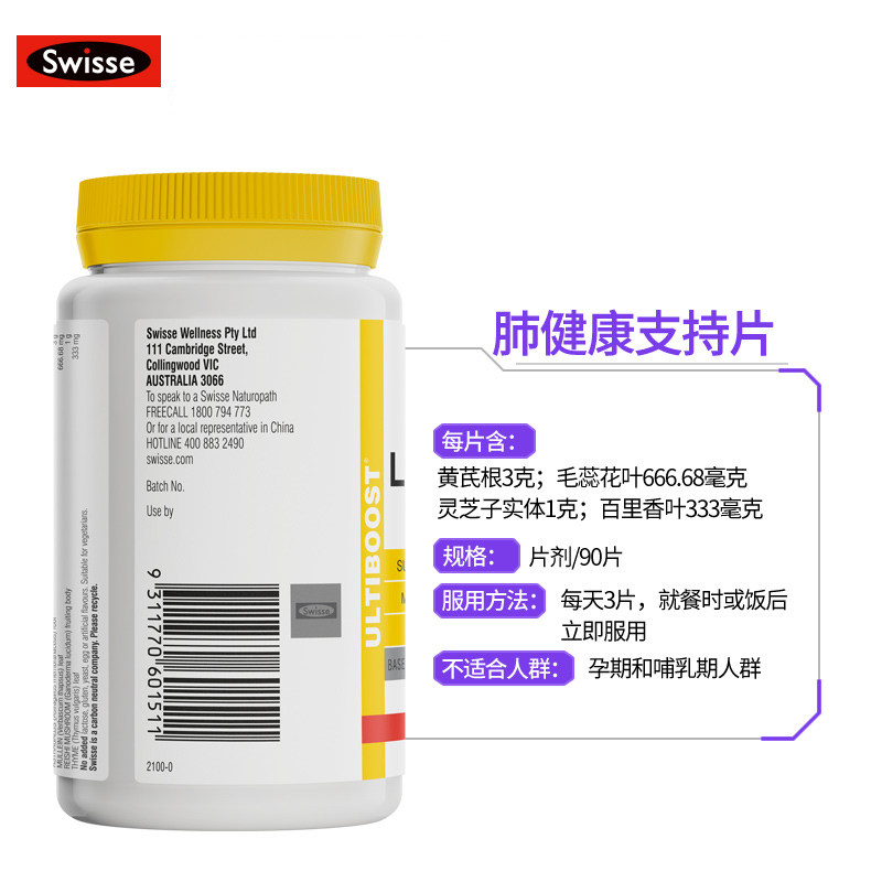 Australia imports swisse lung kinetic energy tablets 90 tablets of herbage Vitamin Clear Lung Tablets Clear Lung-Nourishing Lung