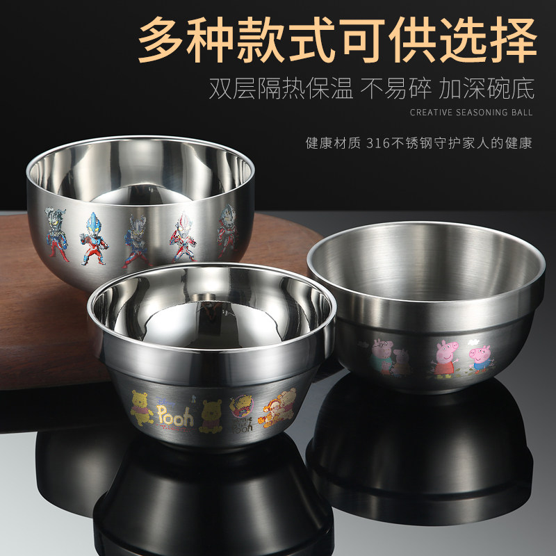 Disinfectable 316 stainless steel bowl double-layer household children's anti-scalding baby rice bowl 304 food-grade tableware insulation