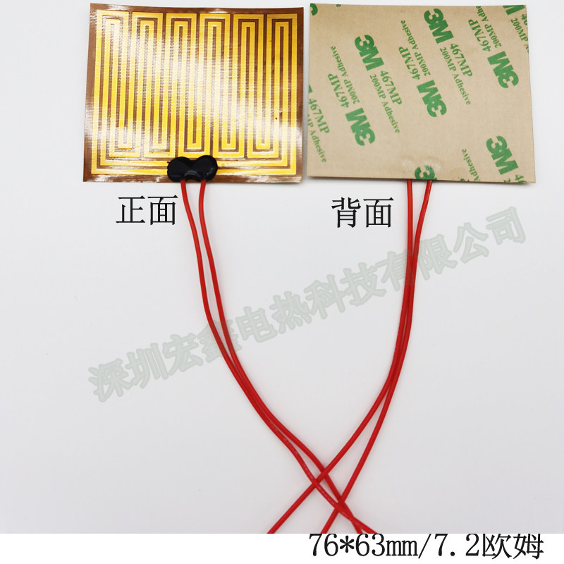 Shenzhen Hongxin 76 * 63 heating film 7 2 Ohm heating sheet hot sheet PI heating film flexible film heating sheet