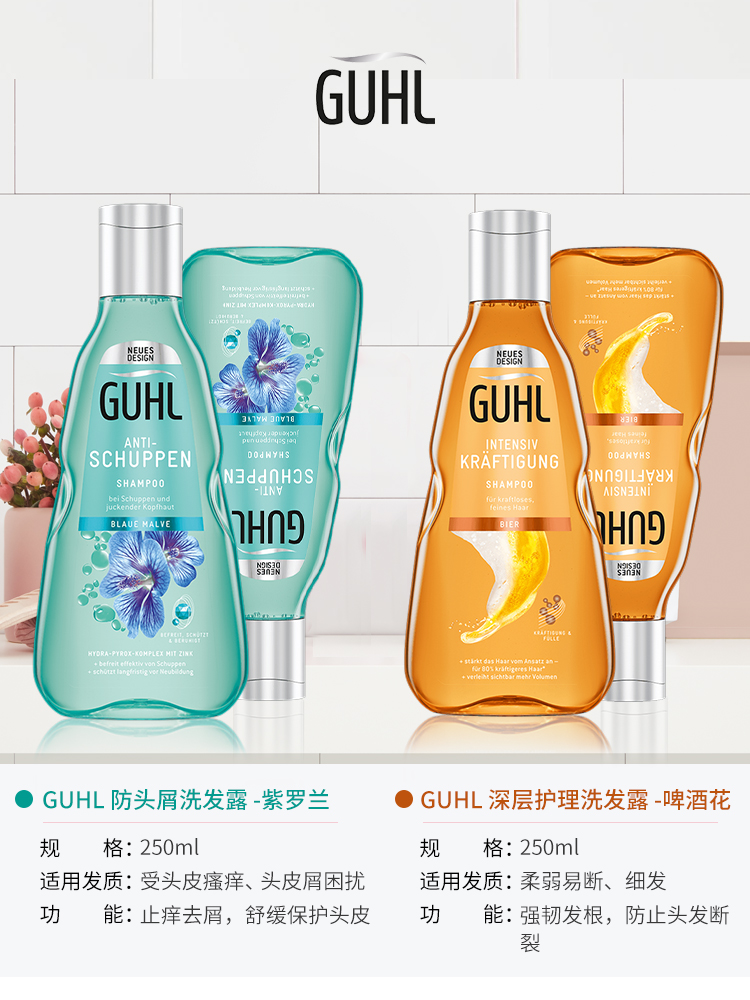German Import Guhl Shampoo High End No Silicone Oil Depth Repair Control Oil Soft And Smooth Anti-Hair Care Hair Stop Itch Crumb