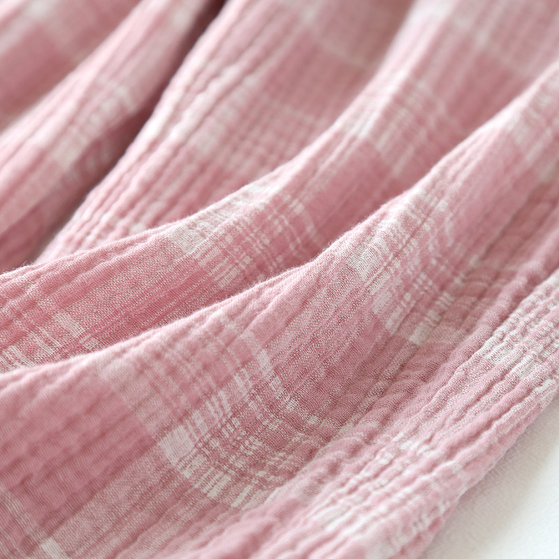 Day Ensemble Plaid Sleeping Pants Woman Summer Seven Pants Pure Cotton Cotton Cloth Thin with loose large size overknee washed crepe cloth Home pants